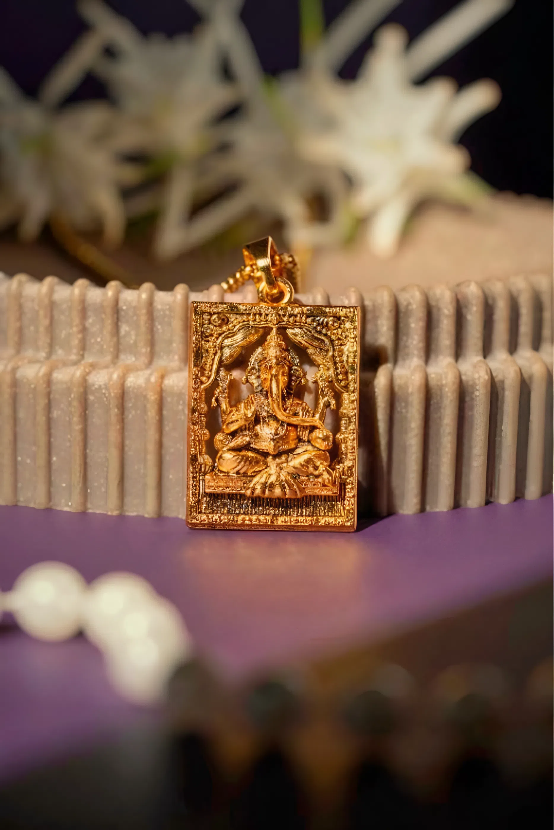 Bring home divine blessings and timeless elegance with our Gold Ganeshji Pendant with Chain. Crafted with precision and devotion, this exquisite piece showcases Lord Ganeshji, the remover of obstacles and the symbol of wisdom, success, and prosperity.